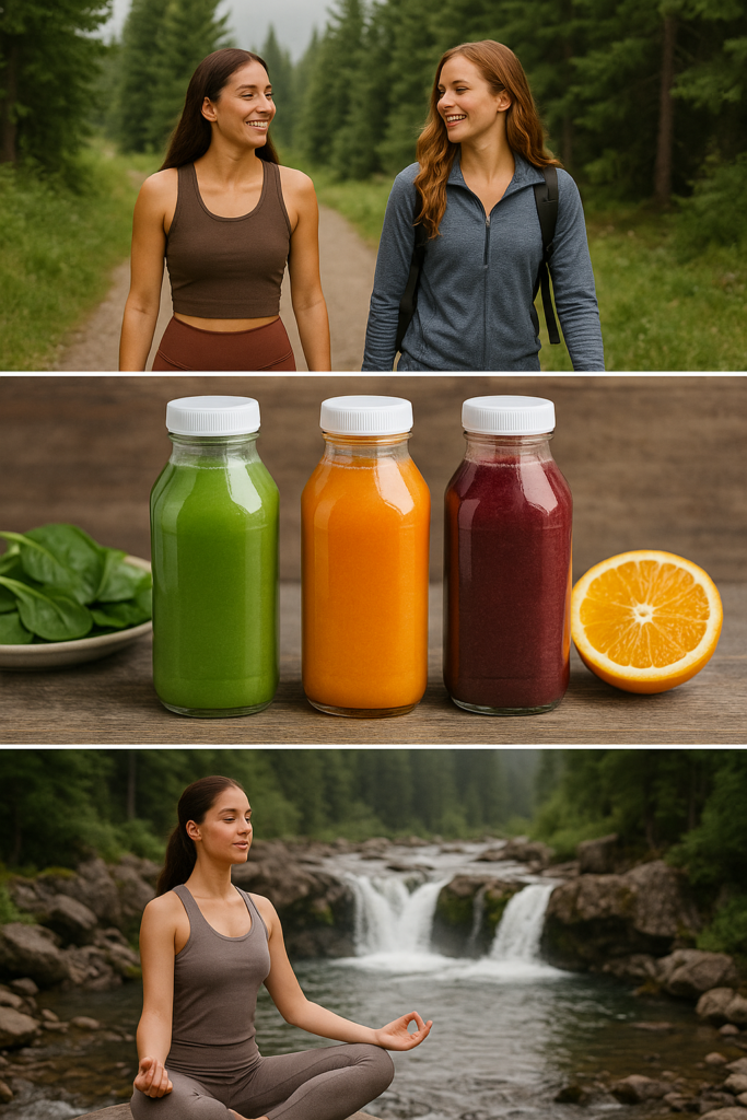 Daily guidance on supplements such as greens powders, probiotics, omega-3s, and adaptogens to support detoxification and vitality. - Restorative Mind-Body Practices: Gentle Restorative Yoga Classes, Breathwork & Meditation, Nature Walks (weather permitting), and Journaling prompts woven into support detox, clarity, and balance.